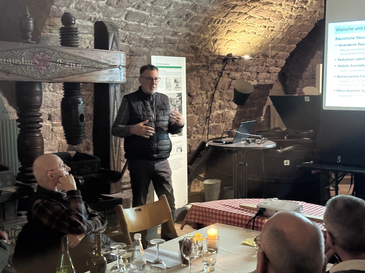 Im Mittelpunkt der Versammlung stand die Präsentation zum Projekt „Neukonzeption des Museums“. Die bestehende Dauerausstellung stammt aus den 1980er Jahren und soll inhaltlich, didaktisch und gestalterisch grundlegend erneuert werden. Eine Voruntersuchung durch die Kunsthistorikerin Dr. Anja Kalinowski und die Innenarchitektin Regina Hauber hat dafür die Grundlagen geschaffen. Das Konzept wurde im Dezember 2025 im Stadtrat positiv aufgenommen, finanzielle Unterstützung insbesondere für eine barriereärmere Gestaltung wurde in Aussicht gestellt.